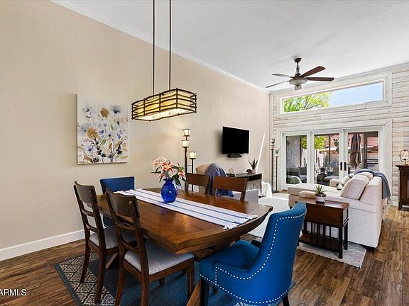 This property has it all! Really great location within Scottsdale, easy access to the 101 FWY, close to great shopping, restaurants & nightlife. Also, close proximity to the Mayo Clinic, Honor Health Shea & so much more! This is a super cute townhome, the pictures do not lie. The kitchen has sharp cabinets, granite counters & stainless steel appliances.. Nice eat in kitchen nook with a breakfast bar too. Living room has a wood burning fireplace, high ceilings & formal dining room. Primary bedroom has a huge sitting room that could be used as a den. Separate exit from primary bedroom too. Nice primary bathroom with large shower & a walk-in closet. The patio has been screened in and gives you a good space for this time of year. Backyard is nice size and low maintenance with artificial grass This property has a really nice flow to it and is great for entertaining. Lots of natural light, high ceilings & neutral colors. Two car garage with some good storage shelves & water softener.