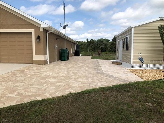 This beautiful, immaculate, and practically new waterfront home on .69 acres has over $70,000 in upgrades and additions have been added to this quality constructed home including a custom $40,000 HEATED, Salt generator pool, with brick paver deck, LED color wheel lighting with wireless screen logic interface. All pool features can be monitored and operated by smartphone or tablet, and enlarged paved screen enclosure, and a solar screen that rolls down to keep enclosed patio area cooler in the summer time. Screened entry with custom, wrought iron screen door, custom window treatments throughout, including wood toppers, wood planked porcelain tile floors added in 4th bedroom, currently used as an office/Den. There is an additional brick paver drive added for boat/R.V. parking, Garage ceiling insulated, and insulated garage doors added, extra shelving added in closets and garage, home fully wired for Cable, Satellite, AND Antenna. 12x20 ft utility shed on concrete pad with electric and wired for a generator. Home features Master suite with both shower and garden tub in master bath, double vanities, granite tops throughout, all upgraded stainless steel appliances throughout are included, beautiful, covered lanai, with a private back yard over 3 lots looking a recently dredged, freshwater canal, loaded with fish. Build a nice R.V. garage, turn it into a tropical park, build another 2 homes, or just maintain for the privacy and space. The additional lots are cleared with a few nice oaks and palms, and very high ground from fill dirt added decades ago from canal construction. Perfectly located near Boca Grande, Placida, restaurants, beaches, Rotonda West, Port Charlotte Sports Complex and malls, and other golf courses, and entertainment. With an optional HOA, this is a fantastic deal!