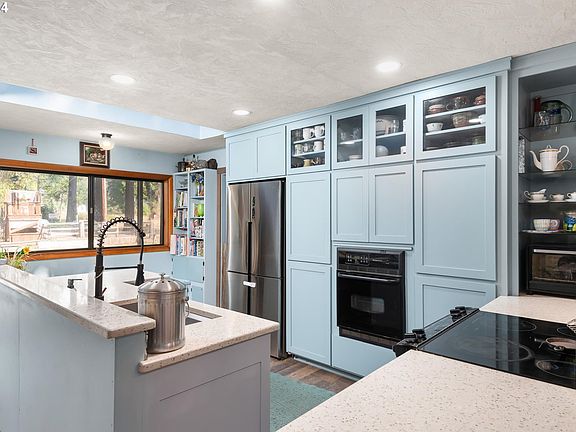 Home is overlooking the Mckenzie River with 1.87 acres of level usable land. Only 20 minutes to Springfield/Eugene, but close to McKenzie boat ramp, fishing, kayaking and numerous recreational opportunities. Property is fenced and cross fenced, has a 2-stall barn, chicken coop area and garden space. Inside features a kitchen updated in 2022, an open floor plan, and an owners suite with a separate entrance. Roof was replaced in 2020. Great opportunity to enjoy close in country living!