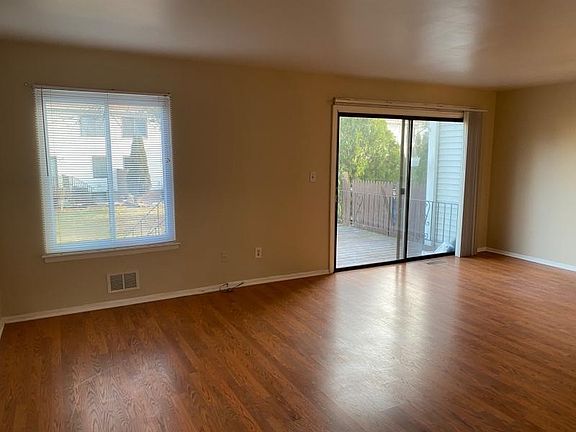 Bright, spacious 2 BR, 2-1/2 bath townhome featuring large LR/DR combination with laminated floors and slider out to the deck; modern eat-in kitchen also has laminated floors and a pantry; second floor features a master BR with a walk-in closet and master bath, second bedroom with a walk-in closet; full bath and another large walk-in closet which could be used as an office; basement is dry and could easily be finished; 2010 most windows replaced, hot water heater 2020; 2 assigned parking spots #50 & 51.
