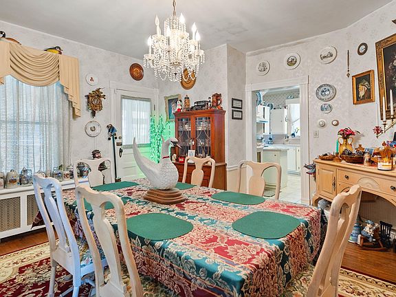 This 3-story Edwardian-style gem offers timeless charm and modern comfort. Nestled on a beautifully landscaped corner lot with two detached garages, this home features a wrap-around porch with ceiling fans and anchored lighting, original hardwood floors, high ceilings, and stained-glass accents. Enjoy 4 spacious bedrooms, a full in-law suite, and a flexible third-floor bonus area with cedar closet. The primary suite opens to a screened sleeping porch—perfect for quiet mornings. A brick walkway winds through the included adjacent lot to a serene seating area and goldfish pond. Extras include 2 HVAC units (1 & 5 years old), new 50-gallon water heater (2025), public water/sewer, a finished basement, and more. Located just steps from the Pocomoke Fairgrounds. A true historic treasure—welcome home!