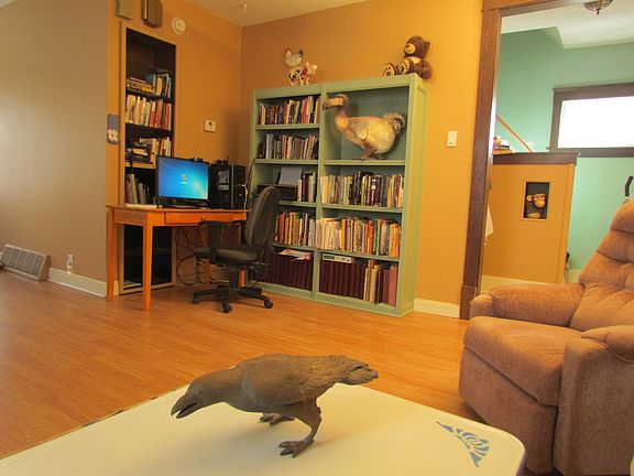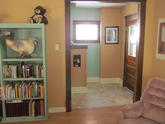The house is very conveniently located near downtown and SDSU. Much of the updating has already been done, while keeping with the historic nature of the original design. Nice south-facing enclosed porch that’s shaded in the summer. Fully fenced back yard; garden spot; alley access; and plenty of parking space. New laminate flooring on the first floor, new carpet on stairs and upper hallway. Recently updated full bath has a big, comfy claw-foot tub and huge storage cupboards for linens. New custom-made kitchen island; new faucet; big double cast-iron sink; pull-out pantry in lower cupboard; and new space-saving energy-efficient refrigerator and microwave. New paint throughout the house. Tons of heavy-duty shelving in basement for storage. Newer energy-efficient natural gas furnace and hot water heater. Master bedroom is currently being used as an artist's studio. There's plenty of room for a king-sized bed, and the wood floor would be beautiful if sanded and sealed. or many more details, see http://www.BrookingsHouse.com