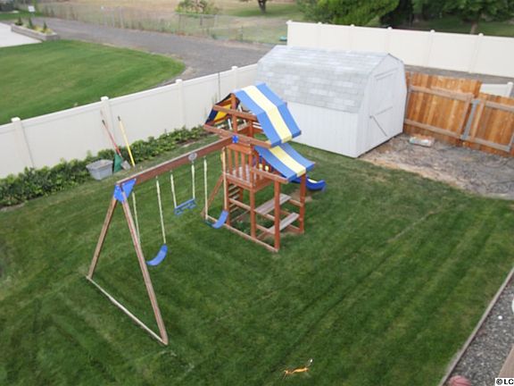Spacious 4 bdrm with fenced yard and garden shed. Very nice covered deck over covered patio. Laundry room with sink. Very attractive kitchen.