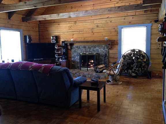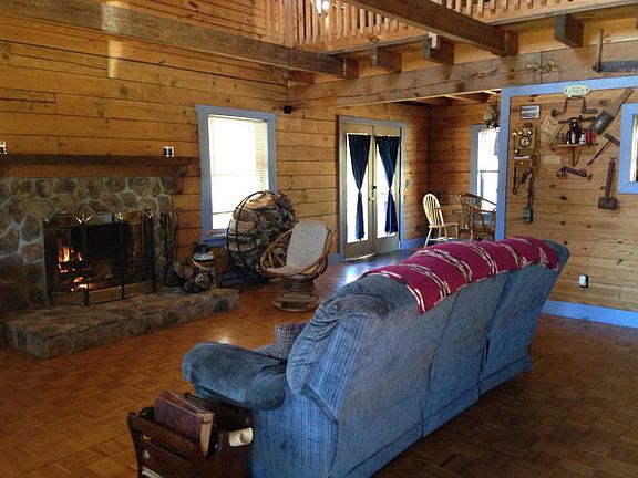 WOW! Hidden treasure here! Looking for a quiet farm in the country? this is for YOU! Long driveway lined with beautiful pines leads to this 3bedroom, 2bath lag cabin that sits on 30 acres! 3 stables with 4 partitions, lots of fencing/gated pasture area, training round for horses, large 20x20 dog kennel with 4 5x20 pens, carports, storage sheds and more!! Relax on the wrap-around porch and enjoy the wildlife passing by or enjoy a dip in the 24ft round 4ftdeep above ground swimming pool! The cabin boats a living room with FP, eat in kitchen, 2 bedrooms and 1 bath down stairs with a loft that can be used as an office, playroom, etc and a master bedroom/bath upstairs. Full unfinished basement with wood stove modified and equipped to heat the home as primary or secondary heat source! MOTIVATED SELLERS! Sellers will pay up to $4000 in closing costs! Call your realtor today!!