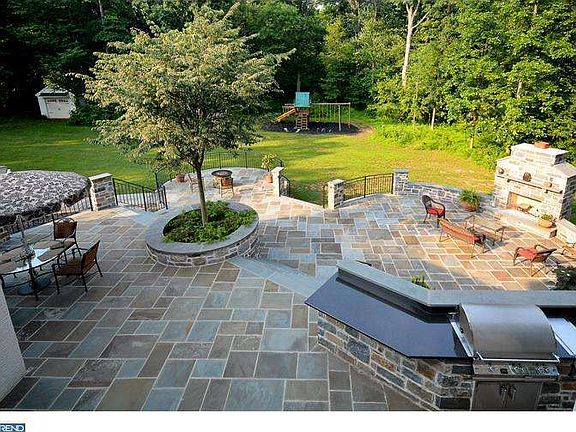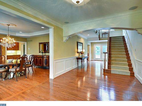 Elegant Farmhouse Colonial on the edge of sought after Skippack Village, Montgomery County. This 5200 square foot beauty boasts 5 bedroom 3 full bath and 2 half baths. The classically styled interior includes: formal dining room with tray ceiling and separate butler's pantry, simply stated but stately formal living room, large conservatory with ceramic floor and huge windows overlooking the treed lot, private first floor office, extra wide center hall running the entire width of the home made stunning by the wainscoting and large arched beam overhead, a striking custom built kitchen with honey colored maple cabinetry, granite tops, large center island with seating for four, sub-zero refrigerator and double wall ovens and a separate breakfast room with seating for eight. The first floor is completed by a cozy and casual family room with vaulted ceiling and windows galore. Ascending to the second floor on the wide staircase you end at an inviting mezzanine with ample wall space for your many volumes or treasured art. The second level of this home can be accessed by either the main staircase or a second staircase at the opposite end of the house for your convenience. The second level holds a grand master bedroom with an enormous tray ceiling, large walk-in closet/dressing room, master bath with custom tile work and separate vanity areas. Additionally, the second floor has four secondary bedrooms two with a shared jack and Jill bath and one with its own full bath. The home sits on 1.84 wonderful acres with woods on three sides. To the rear of the home is one of its greatest assets - an approximately 1500 square foot two tiered stone/Flagstone patio with outdoor kitchen, lighting, plantings, freestanding fireplace and an idyllic water feature. The home has many unique construction features including a 9 zone radiant heating system with 3 well-sized heat pumps for cooling, a 10 foot poured basement with French doors out to a walk up staircase, all leading to the patio above. Additionally, a separate 2 car garage pad has been laid at the end of the driveway waiting for your finishing ideas.