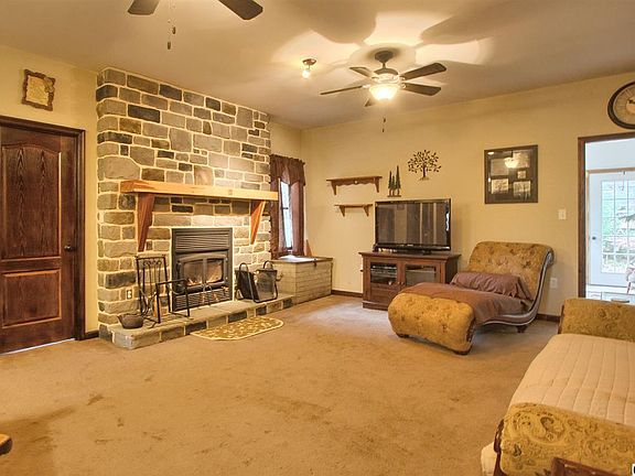 Don~t miss beautiful ranch home on 3.68 wooded acres. This 3 year old home consists of over 2,300 sqft of finished living space, 5 bdrms, 3 bths, Geothermal HVAC, central vac, hrdwd flrs, corian tops in the kitchen, sunroom with vaulted ceiling, wood burning frplce, 3 car grge, and a paved drive. The finished basement allows for a separate quarters due to the kitchen, 2 beadrms, bath and living rm.