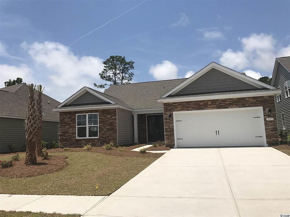 This home is under construction and should be complete by middle of June 2017. **NATURAL GAS** . This home features a covered lanai and an office. Included in the price of the home are the following features: engineered Quick Tie framing tie-down, architectural shingles with 30 year warranty, radiant barrier sheathing, gas fired furnace, gas water heater, 7x 20 hardwood-look tile floorings in all main level living, dining and kitchen areas, tile in bathrooms and laundry areas, Mohawk Stain-Resistant Carpet with 6lb pad in bedrooms, Designer Maxim lighting package, drywall, paint-ready finish garage, crown molding in main living areas, master bedroom and tray ceilings, 3 1/4" colonial cased windows and doors, 5 1/4" base boards throughout home, pre-wired for ceiling fans in living room, all bedrooms and covered lanai, ventilated shelving in closets and pantry, smooth ceilings, 36" staggered maple cabinets with molding and hardware, upgraded granite countertop in kitchen, tile backsplash, pendant lights over kitchen island, single bowl stainless steel sink in kitchen, stainless steel Frigidaire appliances (range, dishwasher, and microwave above range), 1/2 HP garbage disposal, icemaker hookup, 3 phone lines, 5 cable outlets, dual vanities in master bath, raised vanities in all baths, cultured marble vanity tops with under mount china bowls, plate glass mirrors above vanities in bathrooms, Moen brushed nickel faucets, 5 foot shower and garden tub in the master bath, water saver elongated toilets, exhaust fans in all baths, and two exterior carriage lights at garage. Golf cart ride to the beach and access to 6th Ave South from neighborhood. Note: Pictures shown are not of actual home being built they are of the model home that has the optional upstairs and fireplace (which are not selected items for this home), these are used for only illustrative purposes to show what the home layout will look like. Measurements and sq ft. are estimated and not guaranteed and should be measured by buyer once home is completed.