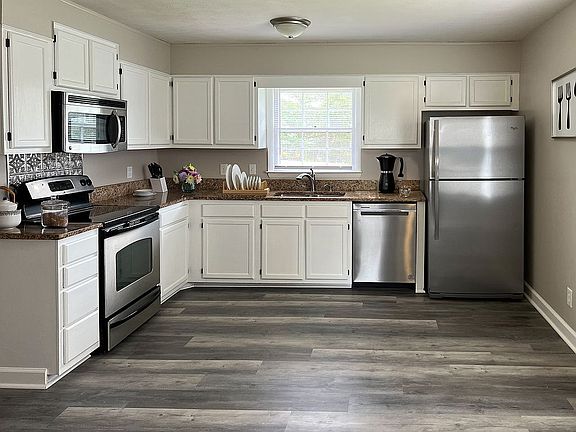 Features formal living and dining room, den/flex room with a cozy renovated fireplace providing an ideal family gathering space, beautiful LVP flooring throughout, and new washer/dryer hookups. Also enjoy a large fully renovated kitchen with white cabinets, stainless steel appliances, including a brand-new dishwasher and garbage disposal. The back porch addition with the ceiling fan and modern lighting allows for an amazing entertaining area or simply a place to enjoy a nice cup of coffee/tea with the view of the mature trees. All the maintenance and upgrades have been taken care of, now it is time for you to enjoy it!!
