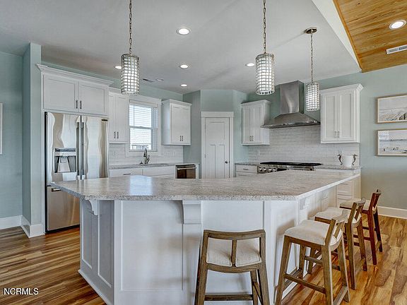 Don't miss this final opportunity of a new construction, single family home in the lovely gated Queens Grant Community! The inviting coastal and comfortable design has views from all angles. Watch the vibrant colors of sunset from your back deck, enjoy the ocean views from your side deck and have dinner with the picturesque Topsail Island Bridge in the background. This spectacular waterfront home located off the Topsail Sound area known as Banks Channel is professionally decorated and furnished by Lorraine Hayes, an established High Point designer. The reverse floor plan featuring an elevator for your convenience makes it easy to stock the spacious kitchen for fun and entertaining around an expansive granite island and adjoining dining area. The Kitchen is finely appointed with upgraded, stainless Pro-style appliances including a double oven. A separate ice machine in the island makes it easy to serve guests without impeding preparations in the large kitchen area. Rounding out the top floor is a bedroom or secondary den that would make a lovely ''work from home'' room with a GRAND view. This gated waterfront community also includes amazing amenities: Private Ocean and Sound accesses, one of the largest pools on the island, clubhouse, playground, sports courts, charcoal grills and picnic tables in the recreation pavilion, day docks, and an expansive private boat ramp. Also included in this offering is your own boat slip just steps away in the marina for your days of enjoyment on the water!