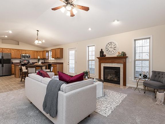 YOU WILL LOVE THIS MOVE IN READY RANCH HOME THAT OFFERS OVER 3,000 SQ FT OF LIVING SPACE! This one owner home features NEW carpet & NEW fresh paint throughout. The open floor plan has a vaulted family room w/ gas fireplace & a spacious kitchen with center island and all appliances that are included. Down the hall you will find three ample sized bedrooms, including the master, which has its own En-suite bathroom. The lower level is the perfect hang out spot with a large rec space that has plenty of closet space for games or linens. There is also a fourth bedroom with an egress window & a non-conforming 5th bedroom that is currently being used as a recording studio. The lower-level deluxe bathroom features a walk-in glass tile shower, newer vanity & flooring! There is still some space for storage in the basement as well! The backyard has a privacy fence, nice sized patio & trees that offer privacy! This home is conveniently located close to schools, restaurants & interstate access!