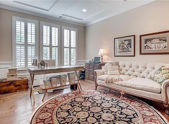 Beautiful upgrades throughout this stunning Eppington South house! From plantation shutters, gorgeous floors, custom closets and coffered ceilings no detail has been overlooked! Oversized center island with extra seating make this open concept chefs kitchen a dream for entertaining! Gas cooktop, vent hood, double ovens, granite countertops, glass cabinets to display china, and stainless appliances. Master suite features coffered ceiling, huge walk-in closet, and a truly spa-like bath with soaking tub, double sink/vanities and separate shower! Oversized bedrooms. Guest bath features double sinks. Large laundry room with sink. French doors to the screened in porch and patio perfect for outdoor parties.