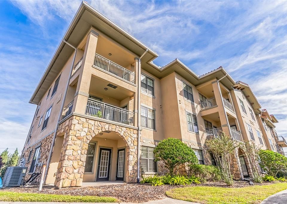 Want to enjoy some maintenance free living? Or maybe you're looking for your next investment property. Well you've found the place for either at this well maintained Condo at Bella Piazza in a great location of Davenport, FL. You won't have to worry about carrying up groceries because this unit is on the bottom floor, and even better, you're on the END UNIT, so only one neighbor! You can also enjoy NO REAR neighbors while sitting on your back covered porch enjoying the water feature found behind your unit. Inside you will be pleased to find that there are not only 3 bedrooms but 3 bathrooms found within each bedroom. Enjoy some time in the kitchen-family room combo area where you can both entertain and be a part of the conversations as well. Feel like entertaining outside of the house or just taking a dip on a hot summer day? Both are easy to do with the 2 pools, hot tub, and splash pad this condo offers along with plenty of tables, chairs, and cabanas to go with. Have a gym membership or want one? This association has you covered by offering access to their on-site fitness center that is included with your HOA fee. Not only is the gym membership included in this fee but you also get basic cable, water, trash pick-up, pool maintenance, and exterior maintenance ALL included. Another great plus to this condo, and a big one for Florida, is that the HVAC was REPLACED in February 2023, so no worries about losing that! Don't let this great condo pass you by, schedule your showing today! No Assignable Contracts