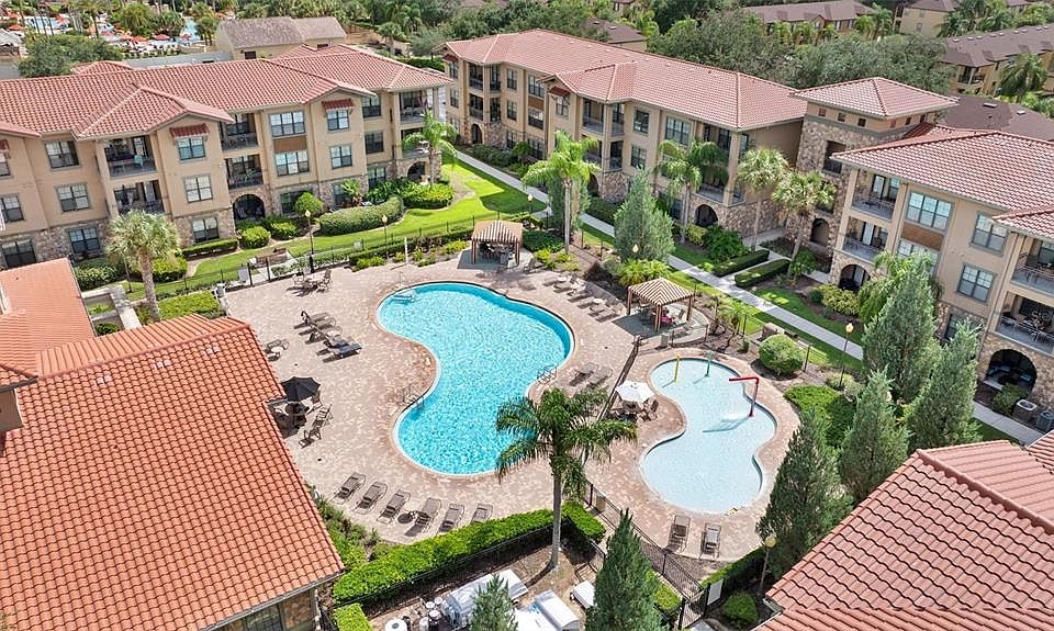 Discover a unique opportunity in this meticulously maintained condo at Bella Piazza, nestled in a serene setting! This property thrives in the Airbnb market and offers versatility for long-term rentals or personal residence. Positioned on the third floor, it ensures privacy and tranquility, featuring a balcony, an ideal spot for morning coffees or evening relaxation. This FULLY FURNISHED 3rd-floor condo boasts an open floor plan and high ceilings, creating an airy atmosphere. Situated only 11 miles from Disney and other parks, it offers convenience and luxury with furnished comfort. Enjoy two pools and a splash area, and a fitness room. A newly installed roof in 2023 and FULLY PAID ASSESSMENT provide modernity and peace of mind. Entertain seamlessly in the kitchen-family room combo area, and enjoy outdoor living with pools, a hot tub, and a splash pad, complete with ample seating. The HOA fee covers access to the fitness center, basic cable, water, trash pick-up, pool maintenance, and exterior upkeep. Community offers a wealth of premium amenities designed to enhance your lifestyle.Enjoy two year-round pools, a splash pad, a lively clubhouse, a well-equipped fitness center, and a modern business facility. The community’s convenient location provides easy access to major attractions, dining, and shopping-including Disney World and Orlando International Airport just a short drive away. Additionally, owners have the flexibility to choose between short or long-term rentals, making it ideal for personal use or income generation. Don’t miss out on owning your own piece of paradise in sunny Florida!