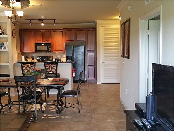 Amazing 3 Bed, 3 Bath, Penthouse end unit Condo located in Bella Piazza being sold fully furnished. The Condo comes with a fully equipped kitchen and is move in ready has an open floor plan kitchen and hallway have 16 in ceramic tile and crown molding. Kitchen has Cherry finish cabinets, granite counter top, tile backsplash. 3 bathrooms all have granite counter tops with tile floors. Large Master bath has dual sinks, garden tub and separate shower. South facing large private balcony with landscaped view has access to Great room and Master Bedroom. Ceiling Fans throughout. Building has an elevator. Bella Piazza has 2 heated pools and Kiddie splash area. Large landscaped Main Clubhouse includes Fitness center, Game room, Business center, On-site Managers office, larger heated pool and furnished Lanai. The 2nd smaller pool is close by & includes a BBQ grill with stone counter. Bella Piazza offers tropical landscaping & well manicured grounds. Cable and Internet are included in the HOA fees. Walking distance to Berry Town shopping center where you find shopping, including Publix. Close to Disney and other World Class attractions and Golf. Use as a primary home, secondary home or vacation short-term rental investment property.