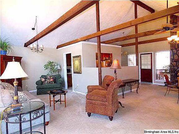 BASEMENT HOME ~Classic Ranch Style with ALL MAIN LEVEL LIVING! GREAT ROOM has a beautiful VAULTED CEILING with WOOD BEAMS and STONE FIREPLACE. A FRAME WINDOWS provides warm cozy feeling of a CHALET MOUNTAIN HOME! OPEN FLOOR PLAN with this ENTRANCE, GREAT ROOM and DINING ROOM all one large area for a spacious feel. KITCHEN has NEW STAINLESS APPLIANCES and EATING AREA. LAUNDRY is conveniently located ON MAIN LEVEL in kitchen area. There are 3 LARGE BEDROOMS and both MASTER BATH and the FULL BATH have SEPARATE VANITY AREAS. FRESHLY UPDATED PAINT in all rooms. DOWNSTAIRS has large FINISHED DEN with vinyl flooring. Enough space for OFFICE AREA to be separate from den. Also has WORKSHOP AREA for tools too. TWO CAR GARAGE has work area. SCREENED DECK overlooks beautiful large cul de sac lot.