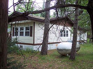 Two bedroom mobile with a roof over and a good handicap ramp to the porch. Located on a county maintained road. Very nice for full time living. Has newer windows and has been well kept. Garage is 24x24 and insulated for quest quarters if you would like. Very affordable upnorth property. #1334