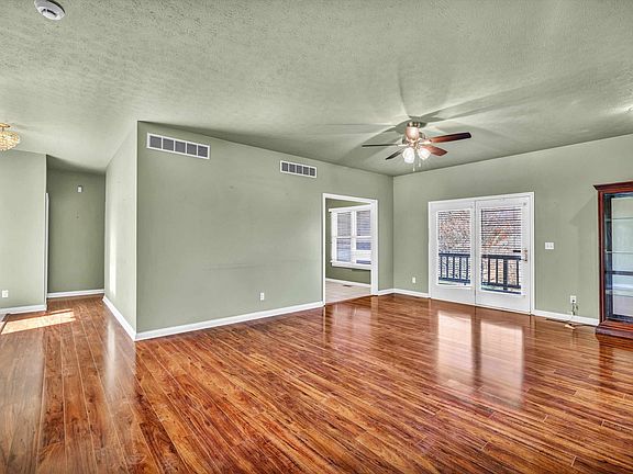 Lots of space in this Wolf Hills home plus a full finished basement. The main floor features a large master suite with his and hers walk in closets. The master bath features a jacuzzi tub, large shower and double sinks. Master suite is finished with fresh grey paint and remote ceiling fans. The living area double doors open to a large covered balcony of trex decking overlooking the back yard. There is a ventless fireplace in the living room with built in storage and shelving surrounding it. Dining room lies just off the living room. Kitchen features an eating area with double windows, hard surface countertops and beautiful stainless appliances. The other two bedrooms, bath, and laundry room are split from the master wing. The basement features include a full kitchen, bath, bedroom, office and large open living space with plenty of natural light. There is a concrete deck with double doors (separate entrance) leading from the living space. All this is within walking distance of The Bridges Golf Course. This home would be ideal for someone needing separate quarters for extended family. Call today for a private showing!!!