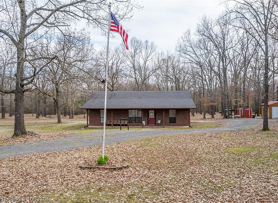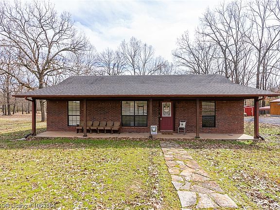 Cute home on just over 3 acres between Hackett and Greenwood in Gwd school district. Situated at the end of Elderbranch Rd. on a partially wooded lot this brick and cedar home has been well maintained by the same family since being built and is move in ready. Split bedroom plan, recently remodeled walk in shower in master, kitchen offers bar seating and is open to the dining area and sunlight filled living room. Nice deck for grilling, extra storage room large enough for home office and a spacious laundry room off the 1 car garage. Storage shed and plenty of room to garden or build a shop. Newer roof and hvac. Private road. No road maintenance agreement available