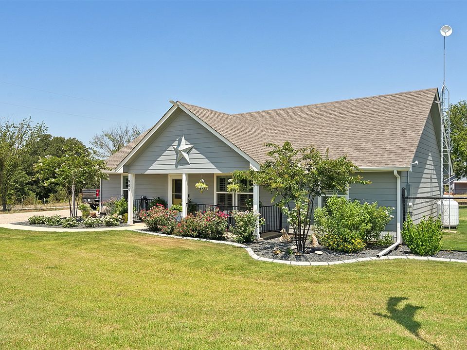 This is it! This is THE one you have been looking for. Too nice and Too cute to be true. Want to settle down in a small quiet town away from the big city, yet close enough for all the comforts? You must to see this property. 38 miles to Ft.Worth, 17 to Weatherford. Sellers thought of everything. Builder shows 1425 sq ft but the open concept makes it feel 1600 plus. Immaculate w 3 beds 2 baths, wood look tile floors, 1 inch granite, plantation shutters, and just impeccable. Enjoy the 30 X 40 shop with extended patio and walk. 9' tall doors, 12' wide with remote roll ups. Sprinkler system, yard completely fenced, super nice landscape with stone lined driveway and beds. Electric metal rail gate on chip seal paved drive. Fantastic shelving in the shop, internet tower, wrought iron porch rail, 20 X 16 extra covered patio is perfect for an outdoor kitchen, and back porch patio 24 X 12. This home is a must see and doesn't need a thing.