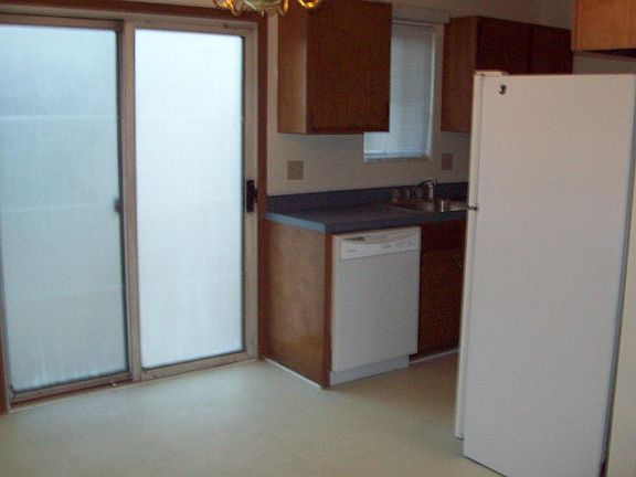 This is a 3 bedroom, 1 bath on level duplex. Large living room with cathedrial ceilings, eat in kitchen, laundry hook ups, fresh paint, electric baseboard heat, driveway & storage shed.
