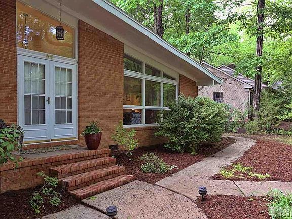 Light-filled, mid-century modern home on half acre in sought-after Chapel Hill neighborhood. 4 spacious bedrooms, 3 full baths. Gracious living room has picture window and flows to formal dining. Eat-in kitchen has stainless appliances and opens to huge screened deck with cathedral ceiling that overlooks wooded, private lot & large in-ground pool. Big, bright family room with newer sliding glass doors. Large master bedroom with updated en suite featuring walk-in shower and soaking tub. CHCC schools.