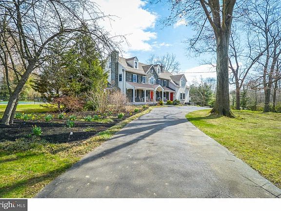 Welcome home to this beautiful custom colonial in Lower Gwynedd! Set on 1.5 wooded acres, this meticulously-maintained home boasts a first-floor in-law suite, the finest in upgrades & an outdoor setting that's perfect for entertaining. The front of the home shows off its farmhouse style with a stone front, large windows, & a full length, columned porch highlighted by a metal roof, grand portico entrance & a welcoming red front door. The light-filled 2-story foyer is defined by a marble tile floor with inlaid accents, an oak staircase & picture framed wainscoting. The spacious living room is highlighted by hardwood floors, a granite-accented wood-burning fireplace & custom built-ins. The dining room features hardwood floors & a stone-accented gas fireplace. The chef's kitchen wows with a wall of greenhouse windows providing serene views of the magnificent backyard. The kitchen continues to impress with a breakfast bar peninsula & a large island with bar sink; bountiful cabinet storage; granite and Corian countertops; high-end built-in stainless appliances, including a Thermador brand range with stainless hood; hardwood floors & recessed lighting. The breakfast area has French door access to the patio & sliding door access to the stoned-accented screened porch. A half bath, laundry area, 2nd stairway & in-law suite complete the first floor. The in-law suite features hardwood floors, a light-filled great room & full kitchen, a full bathroom, laundry & a bedroom. The 2nd floor features a spacious master suite with walk-in closet, separate sitting room & a luxurious master bath with marble shower and two sinks. Three additional bedrooms & two hallway full bathrooms complete the 2nd floor. Two of the bedrooms have spacious double closets; the 3rd bedroom has a large walk-in closet & 2nd closet. The full-height, floored attic can be accessed from the hallway. The lower level of this home boasts a basement with a finished, multi-purpose space & an unfinished storage room with access to the 3-car garage. The backyard features an expansive bluestone patio, a fenced & updated in-ground heated pool with lap lane, pool house & magnificent landscaped gardens with an irrigation system. Other features of the home include an interior sound system, 4-zone heating, upgraded electrical service, newer HVAC (2014) & a whole house generator. All of this, plus easy access to shopping, schools, Route 309 & the PA Turnpike.