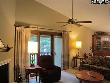 Beautiful neutrally decorated two bedroom, two bath Carriage House in Hampton Woods. The kitchen offers Corian counters, tile back splash & wood plank flooring with a dining area. Vaulted ceilings in the living room & open formal dining area. There is also a fireplace & a large Pella sliding door that leads out to the deck with great wooded views. You will love the newer Pella windows & door with between the glass blinds & pull down screens. The master bedroom has a hall of closets that leads to the master bathroom. Both bathrooms have tiled floors. The large laundry room has tiled floors, utility sink, & washer & dryer stays. There is a two car attached garage with extra storage. Enjoy the pool, tennis courts & clubhouse. Basic cable is also included in the HOA fee. Great location.
