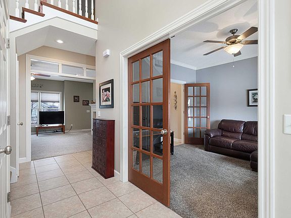 Great quality built, beautiful 2 story by Terry Knutsen on a level landscaped lot! Spacious room off the front foyer that could also be used as a formal dining room, office or den. Cherry cabinetry & built-ins, updated countertops, pantry & appliances stay including dishwasher & newer microwave. Cozy double sided fireplace with built-ins in the great room. Primary suite features dual sinks with jetted tub & tile shower. Bedroom 2 has window seat and built-ins. Spacious bedrooms. Basement has daylight windows, large rec room with game area & full bath with tile shower. Newer roof (2016), aluminum exterior siding. Oversized 3 car garage. Large lot situated on a quiet cul-de-sac.