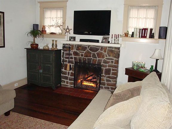 JUST REDUCED!!! SELLER WANTS YOUR OFFER TODAY! 4 bedroom 1 full bath Bungalow has Beautiful Hardwood floors on the main floor. New windows throughout, Updated Kitchen, Slate tile back splash and very open. Large stone wood burning fire place in the living room. The Heating and Air conditioning are only 5 years new. Partially finished basement with a bedroom, extra living room and a built in cabinet for your electronics. Professionally done paver patio in the back of this huge yard that is well maintained with an Herb garden. 1 car detached garage and a huge drive way for 6 plus cars so if you have a big vehicle no problem. New carpets on the 2nd floor. Old world charm with new world flare. Pick up the phone and call today to come see it in person! Sellers are ready for your offers! This could be the one!