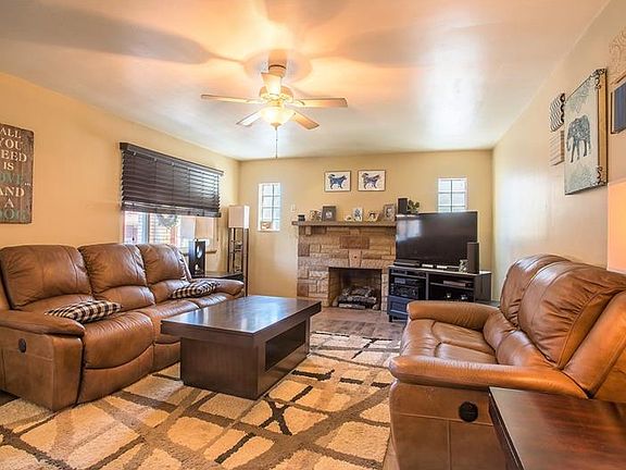 Charming brick home with covered front porch and 2 off-street parking spots. Beautiful stone fireplace (ventless) in Living Room with new floor laminate flooring. Updated Bathrooms on the main level and upstairs. Large Kitchen with access to the back covered porch with fenced in yard. 2 bedrooms on the main floor. The upstairs features a 2nd Living Room, additional walk in closet, 3rd bedroom, and 2nd Kitchen. This space could also be used as separate apartment if needed with its own side entrance. Tons of space down in the basement with additional powder room. New 90% efficiency furnace and A/C June 2016.