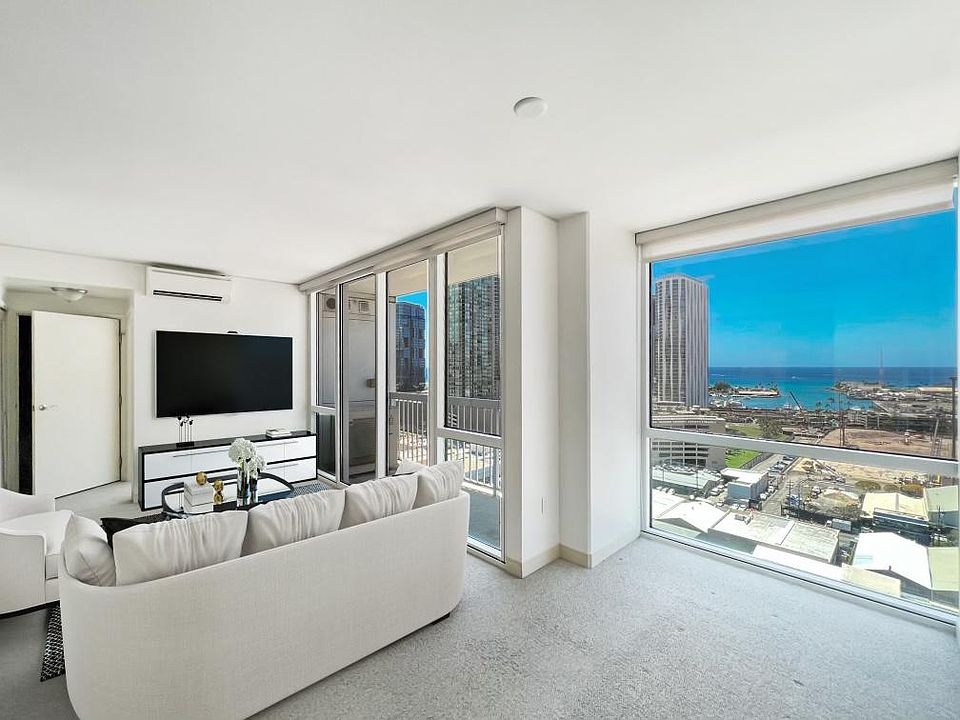 FOR RENT Available Feb 1st. Featuring floor-to-ceiling windows to enjoy amazing ocean view from every room! Partly furnished 2 bedroom/2 bathroom, 2 covered tandem parking in secured building. $3500/month. Security deposit equivalent to 1 months rent required. Split A/C, granite counter tops, washer/dryer in unit, large storage closet. 24 hour security, pool, party room, BBQ area, fitness center. Desirable location to live, work, and play! Conveniently located across the Blaisdell Center, near restaurants, Ward Village, Ala Moana Center, Ala Moana Beach Park, Kaka'ako Waterfront, Straub, Queens Medical, Kapiolani Medical, and on bus-line. No smoking. No pets. Water/sewer included. Tenant responsible for electricity/internet/cable. Tenant occupied and need minimum 48 hr notice. $20 non-refundable application fee/person. Building charges a registration fee of $50. Some photos have been digitally staged. RS-76983 1 yr lease. Water/sewer included. Tenant responsible for electricity/internet/cable. $20 non-refundable application fee. Building charges $50 move-in fee. No pets. No smoking.