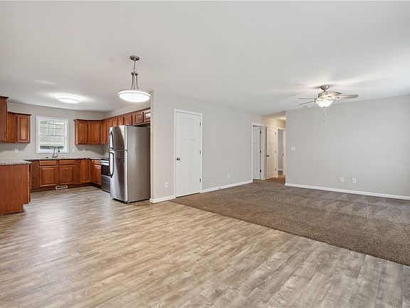 This ranch-style home offers 3 bedrooms, 2 bathrooms, and an open concept layout. The living, dining, and kitchen areas seamlessly blend, creating an inviting atmosphere for gatherings. The primary bedroom features an en-suite bathroom and walk in closet. Two additional bedrooms, laundry area, and full bathroom complete the main level. The unfinished basement has daylight windows, high ceilings, and tons of open space. Located close to amenities, schools, and parks, this property provides the perfect balance of spacious living with city convenience. Don't miss this opportunity—schedule a viewing today.
