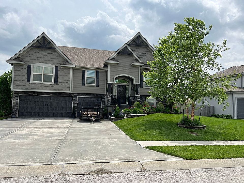 Whitetail run subdivision off 195th Raymore. 3 plus garages (extra deep).Screened in deck, cedar gazebo on concrete, granite in all bathrooms. Barn doors in master suite. 8ft island in kitchen more pictures to follow. LVP in all hose expect 2 of the bedrooms new carpet. 6foot wide staircase in entry. Split lever, walk in from garage to family room, 4th bedroom and bath, tile in bath and family room. Attic has pull down stairs in hair and wood floors for extra storage. Walk in closes in all rooms. New walk in pantry.