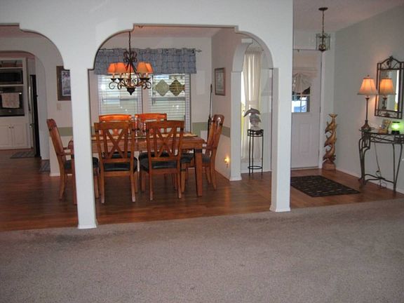 This great home is located in beautiful Four Lakes, a 55+ Gated Retirement Community with homes on lot leased land. Here you own the home and not the land. You pay a monthly rent for the land and it allows you and your guest to use the amenities of the community. The monthly lot fee on this home is $644.47. This spacious triple-wide home features three bedrooms, two baths, large den, split floor plan, formal dining room, archways, newer windows, and tape and texture walls. The large eat-in kitchen has been updated and has all newer appliances along with plenty of counter space and cabinets. Sliding glass doors lead to the Florida room with tiled floors, heat and air....and gorgeous views of the golf course and pond. The lovely master bedroom has a very large walk-in closet with mirrored doors and the master bath features his and her sinks, walk-in shower, and plenty of storage cabinets. The wide deco drive leads to the 12' X 12' golf cart garage and, yes, the golf cart is included. This home has great curb appeal and it's topped off with a large wood front porch. This home is very well maintained and tastefully decorated and updated. It truly is a special home and it could be yours!