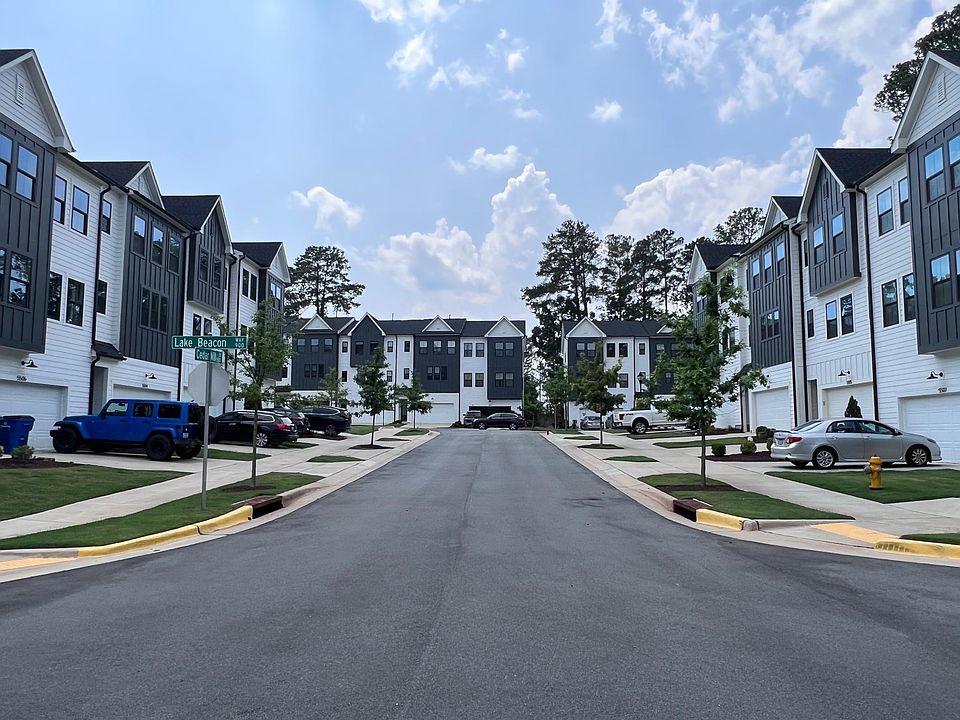 Desirable Raleigh Location! 4BR/3.5 BA end unit, corner lot, three level townhouse w/2 car garage (incl 50 AMP plug for electric fast charging), 1st floor guest room, 2nd floor with open gourmet kitchen, wall oven, microwave and gas cook top; quartz kitchen counter; range hood vent to outside. Great owner's suite w/large walk in closet, and another bedroom on 3rd floor. Large private deck, back to Lake Johnson's trail. Convenient location - close I-40, short distance to NCSU, close to downtown Raleigh. Available now! Property managed by PM. 12 months lease + preferred. Pet negotiable