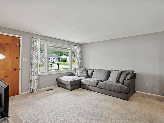 A beautiful 3-bedroom, 2-bathroom ranch on a wooded cul-de-sac street! This home offers a functional layout, with over 1,300 finished sq ft, and two generously sized living spaces! Newer elements of the home include: all double hung vinyl wrapped windows, the dimensional shingled roof is 6 years young (complete tear-off and sheathing replacement), HVAC systems (filtration system updated last year), gas water heater, plank flooring in the full bathroom, half bathroom vanity and barn door at rear living room. The large picture window in the front room allows for tons of natural light to pour through the home. The eat-in kitchen is the heart of this home, offering an open space to make memories and hold conversations with the cook! All appliances are stainless steel and are included in the sale. The high efficiency washer and dryer are also new, and those stay too! Cozy up to the stone surrounded woodburning fireplace or entertain around the firepit out back! Looking for storage? This place has it! The 12x24 attached garage offers ample space for parking, hobbies and/or storage! There is attic storage too! This property is just minutes from shopping, schools, restaurants, and I69. Schedule your private tour today!
