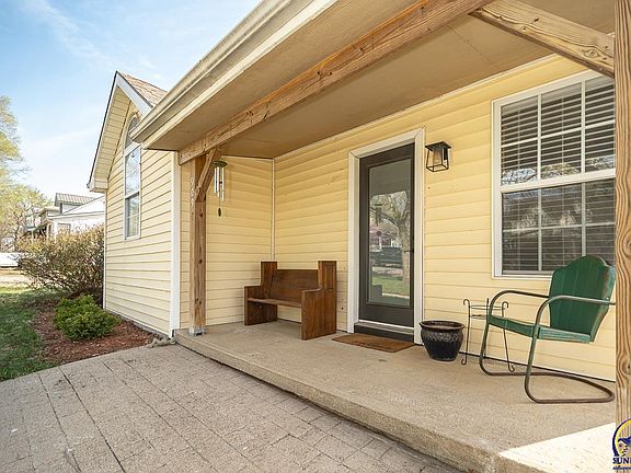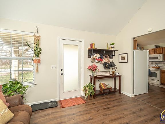 This delightful 3-bedroom, 2-bathroom bungalow offers the perfect blend of charm and modern convenience with all one level living. Over 1,100 sq. ft. of finished space, this home is ideal for those seeking comfort and style. The primary bedroom is a true retreat, featuring its own full bathroom and a spacious walk-in closet. The home has been thoughtfully updated with new flooring in the kitchen, living room, and two of the bedrooms, along with fresh paint throughout the living and sleeping areas. The addition of new blinds brings a fresh, clean look to every room. Enjoy the outdoors in your large, fenced-in backyard and spacious patio area, providing plenty of space for pets, gardening, entertaining or relaxing. The detached one-car garage provides parking and extra storage. Convenient location to the major cities- Kansas City, Lawrence, and Topeka, this home is ready to move in and waiting for its next owner. Don't miss the opportunity to make this beautiful bungalow your own – schedule your showing today!