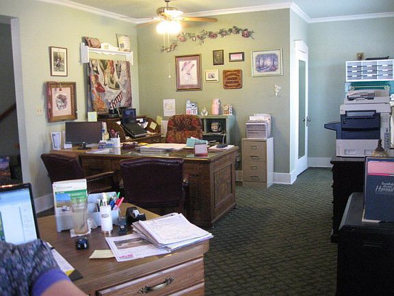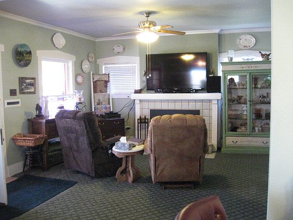 Charming and immaculate describes this historic 98 year old house!! 2 Bed. 2 bath home has 2200 sq. ft., with unfinished basement w/over 600 sq. ft. New plush carpet installed this year throughout the lower level and new wood floors in the kitchen and hall. The tiled fireplace has an insert wood stove w/glass door for efficient heating and a cozy atmosphere. This home has all the conveniences of a new home with all the charm and nostalgia of an older home. Oil & electric heating w/baseboard heaters and window air conditioning units for summer. City living wall the availabilities, but still very tranquil and serene. There's a large 2 car garage that's also a shop and a substantial graveled parking area. With the remodeling done and low maintenance work outside, this is the perfect location for an older couple or anyone that's dreamed of starting your own business at home!!!!