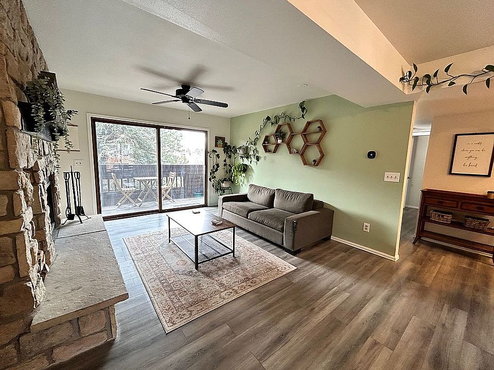 Welcome home! This beautiful 2 bedroom 2 bath condo offers stunning views of the mountains, as well as easy access to all of the outdoor activities and natural beauty that Colorado Springs has to offer. The condo features a spacious and airy open-plan living area that includes a living room, dining area, fireplace and modern kitchen with updated appliances, butcher block countertops, and ample storage space. The bedrooms are well-proportioned and come furnished with upgraded laminate flooring and plenty of closet space. Each bedroom includes a private bath with tub and shower, essentially two masters! The private balcony/deck offers breathtaking views of Cheyenne Mountain. Additional amenities include stackable washer and dryer, central air conditioning and heating, and a two-car garage. The complex also features a swimming pool for use in summer months. Plus, the condo is just a short walk away from Quail lake and its hiking and biking trails, fishing, and boating opportunities. Located just a few minutes' drive from downtown Colorado Springs, with its vibrant restaurant and shopping scene, as well as major highways and roads that connect you to other parts of the city and beyond. Many recent upgrades include: A/C unit replaced in 2019, new laminate flooring installed in 2020, roof on unit replaced in 2020, new water heater in 2023, and furnace replaced in 2024. Showings begin on 3/25/24.