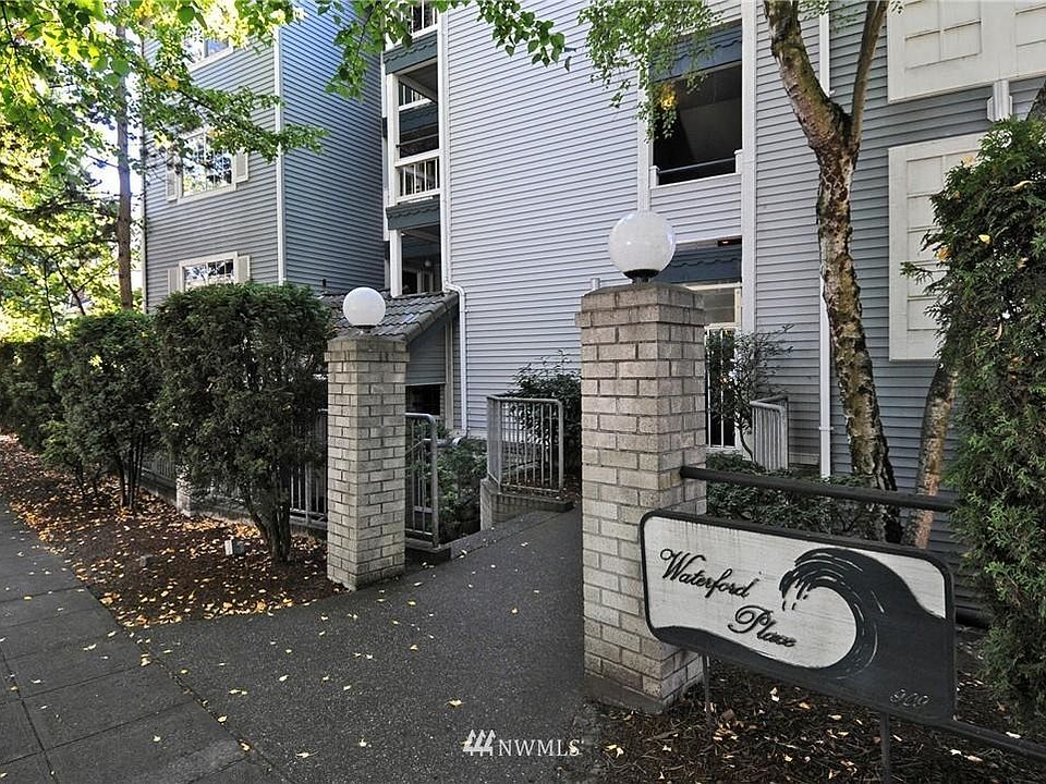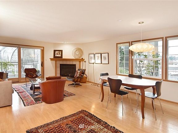 Fabulous lake/city view from Waterford Place Condo at the Center of the Universe in friendly, funky, Fremont. Walk to shops, library, schools, restaurants; buses to U. of Wash.(3 mi),downtown (4 mi), South Lake Union (1/2 mi.), Seattle Pacific U.(1 mi.) Large unit (1315 sq ft) with sunny south/west exposure. Huge bedrooms and baths, all hardwood floors, recessed ceiling lights, wood burning fireplace, customized walk-in closet, deck, reserved parking. Recently painted; move-in condition. Contact owner directly at: