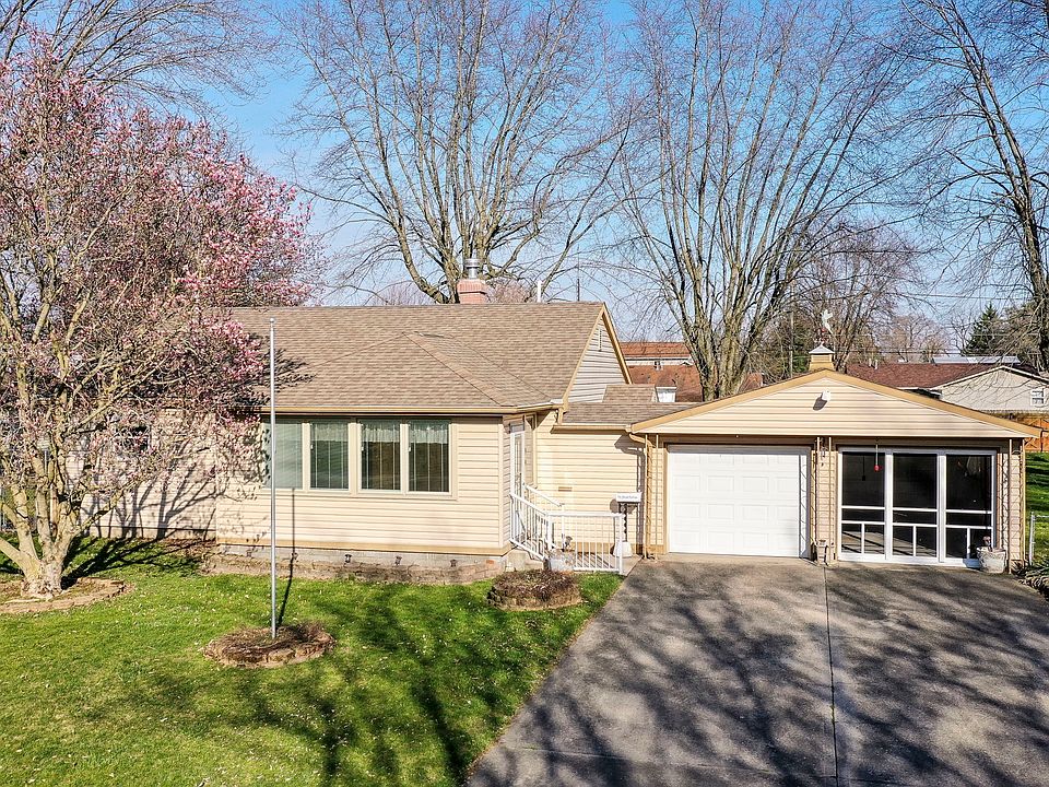 A charming ranch with 2 bedrooms & 1 bathroom on a .39-acre lot. This home boasts a sunroom, a cozy living room with a gas log fireplace, an eat-in kitchen, a family room leading to a spacious backyard, an office, and a laundry room with washer/dryer included. Additionally, it offers an oversized 2-car garage with a screened side for enjoying fresh air. Recent updates include a new water heater (2020), roof (2018), and furnace (2016). Also, it comes with gutter guards and a fenced backyard. Move-in ready for you to personalize and make it your own!