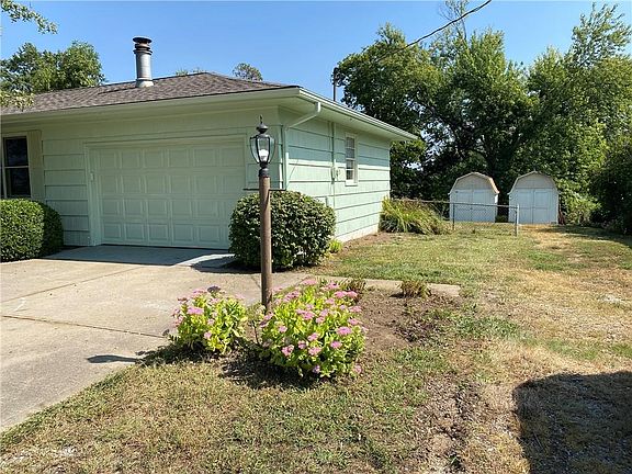 3 bedroom, 1 1/2 bath sought after true ranch in the Fort Osage School District outside of city limits. Hurry because this one won't last! Updated kitchen with new backsplash, counter top and faucet. New glass shower doors in main bath. New paint and light fixtures throughout. This house is super clean! The original hardwoods are gorgeous. Finished full basement with plenty of carpeted living area. Also storage, laundry and workspace. Single car garage with separate heat and attic fan. This property has the most amazing views! Enjoy the sunrise in the sunroom or on the secluded back deck. The well maintained large yard has beautiful trees and flowers with fencing, two sheds for additional storage and great little garden spot. Large shared driveway with plenty of parking.