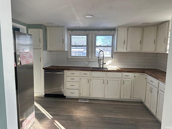 Newly Remodeled Home. New Furnace, Metal Roof is 5 years old, kitchen features -recessed lighting with night glow, new Samsung appliances, mulit-use sink, and butcher block countertops. Vinyl waterproof flooring throughout home. Vanity with marble countertop in bath and soft-close drawers. Laundry on main floor, washer and dryer included. Tiered back deck, covered front porch, and shed included. Nice back-yard.
