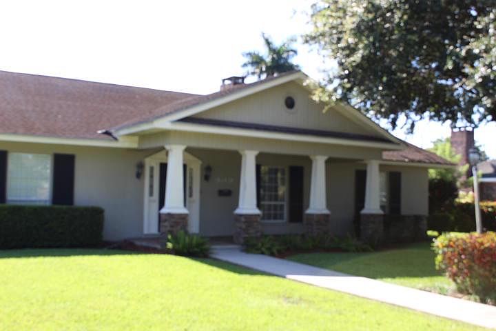 Great location for this well maintained 3 bedroom 2.5 bath pool home with office on a corner lot with 2 car garage. Home features a gas fireplace in living area, built in book shelves, unique kitchen with large center island all wood cabinets and lots of built-ins. Split bedroom plan, master bedroom has large walk in closet plus 3 other closets a dressing area with sink in addition to master bath. 2 covered porches, fenced pool area, pool is oversized and has a waterfall. The living area is all tiled and wood laminate in the bedrooms. Extra storage shed attached to garage, floored attic storage. Newer AC