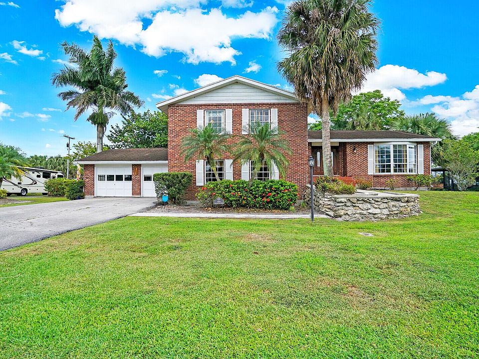 One of a kind custom built home. This is a must see large 5 bedroom Pool home in prime location. Entering the home into elevated formal living room with bay window, a few steps up to 2nd story 4 bedrooms featuring real hardwood flooring through out. Ascend a few steps into a formal dining room large kitchen and dining area all overlooking the pool . Extensive screened patio making this area perfect for entertaining. The family room has 2 seating areas a brick fireplace and a bar/game area. The 5th bedroom is just off the family room with its own bath. The home has lots of storage , a laundry room, tiled floors in kitchen and family room. The garage has built in storage as well. The bay window in the living room has impact glass and other windows have according shutters.