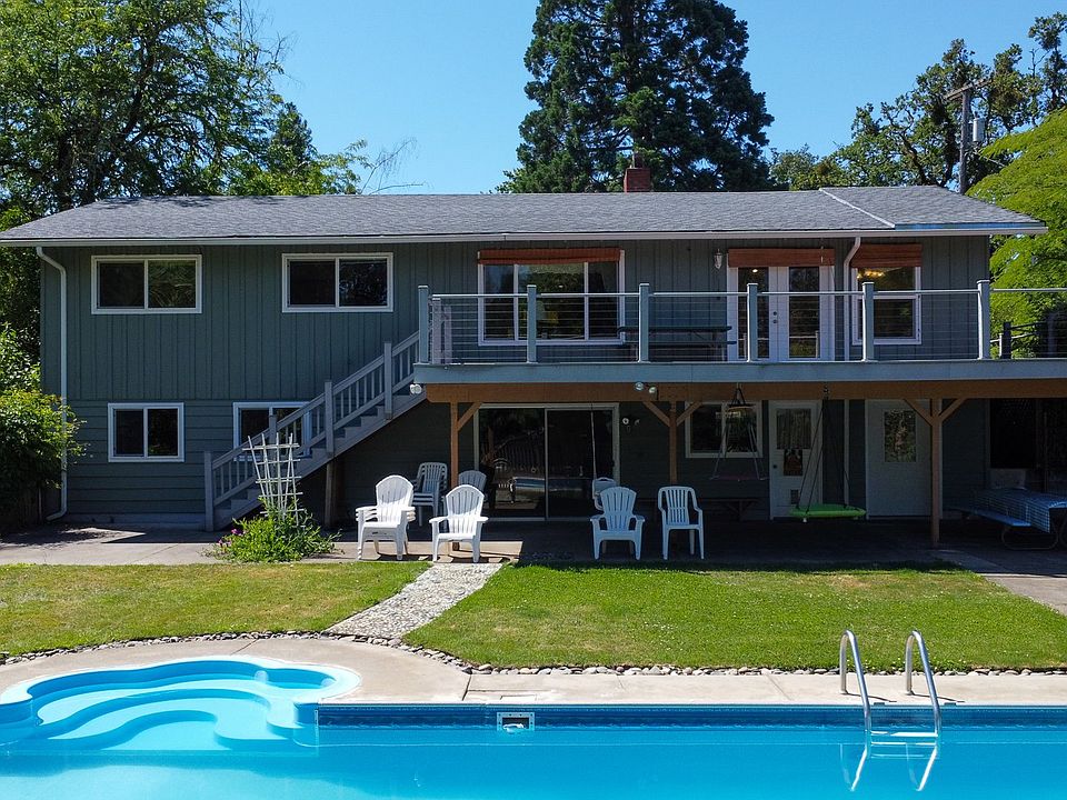 This 4-bedroom, 3-bathroom home spans 2,493 sq ft on a 2.54-acre lot. Enjoy a private in-ground pool, versatile barn, chicken coop, and basketball court. The spacious kitchen, cozy fireplaces, and inviting living areas filled with natural light create a delightful atmosphere. The home includes irrigation and water rights, and has easy river access on a private path. Experience tranquil riverside living with stunning views and outdoor activities. Perfect for families and hobbyists, this serene yet convenient property could be your new home. Schedule a showing today!