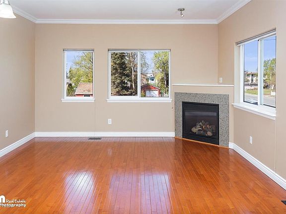 2 stories, 2 bed/2bath, 1 car attached heated garage w/ parking for additional car in driveway, hardwood floors throughout, granite countertops, 12' ceilings upstairs, crown molding, gas fireplace, washer and dryer in unit, 2.6 Miles to Elemendorf AFB Pease Ave Gate, 1.3 miles to 5th Ave. Mall, close to all the conveniences, friendly neighbors
