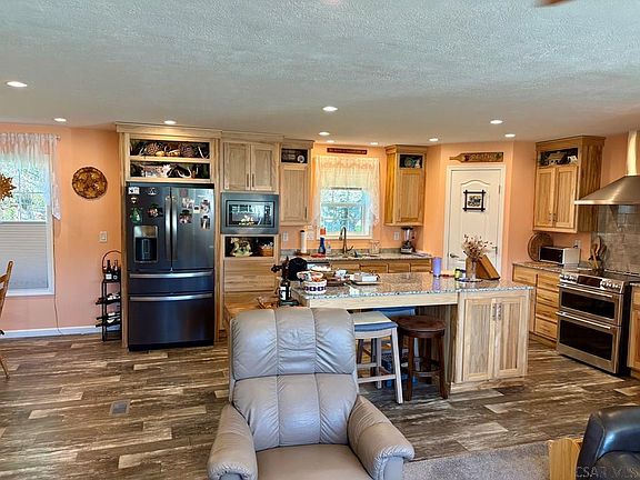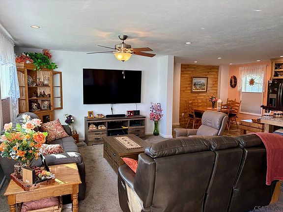 Manicured and Clean is this 2019 manufactured 3 bedroom ranch style home. It features a master bedroom with a master bath, glass shower, double bowl sink and walk in closet. The open floor plan shows a hickory kitchen with a corner pantry, granite counters and island and top of the line GE appliances. It is open the living room and dining area. 2 more bedrooms on this side of the house and a large laundry room with sink, folding table and built ins. You will love to sit in the private 24 x 30 covered carport. The oversized 2 car garage is a definite plus with the level yard and stamped concrete walk way.