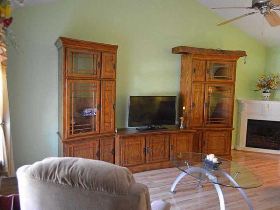 Cozy one owner home in a great area! Beautiful combination exterior makes this home stand out. Large living area with vaulted ceilings, split bedroom layout with two bedrooms off the living area, each with ample space and a full bath with double vanity. Spacious kitchen with center eat-in island, lots of counter and cabinet space, and open dining area large enough for a table and more! Master bedroom has two walk-in closets and double vanity in the ensuite bath. Enjoy the quaint back deck that overlooks the sizable backyard. Built in 2006 and with just one owner this home is like new!
