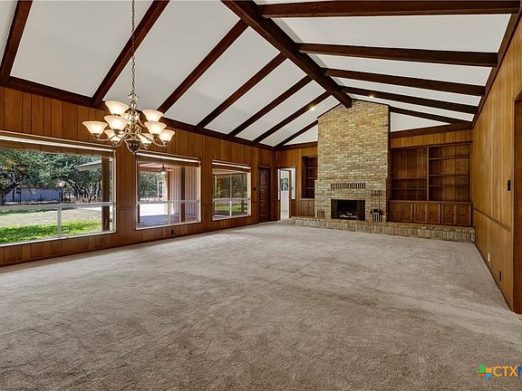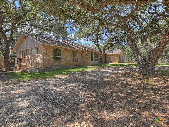 Significant Price Improvement! Beautifully set on 3.42 acres in the hidden gem neighborhood of Country Estates, this one-owner, custom-built ranch-style brick home offers space, character, and convenience. At 3,540 square feet, the property features 4 bedrooms, 3 bathrooms, and a large 368-square-foot game room on its own wing—ideal for a guest or in-law suite with a full bath nearby. Inside, the expansive 570-square-foot living/dining room features a dramatic floor-to-ceiling brick wood-burning fireplace with built-in bookshelves. Vaulted and beamed ceilings in the living area, office, and primary suite create an open and inviting feel. Authentic mid-century wood paneling adds character, while expansive windows bring in natural light and views of the tree-covered yard. The primary suite opens directly to the covered back porch for easy indoor-outdoor living. The property provides exceptional storage, multiple workshop spaces, a fenced backyard, and a side yard with chicken coop. A slab once used as a sport court could be reimagined for recreation or entertaining. Additional highlights include an insulated well house and flexible outbuildings for storage or hobbies. Detached oversized one-car garage and two car covered carport. Country living meets convenience with a low county tax rate, just 3 miles from HEB and minutes from Texas State University. Residents can also join the neighborhood recreation association for pool and tennis access with a minimal yearly fee. This property is ideal for those who want space, privacy, and the charm of the Hill Country—without sacrificing proximity to the benefits of in-town living.